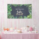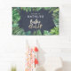 Modern tropical palm leaf watercolor foliage baby shower invitations. Hand painted gold effect script text. Part of a on trend summer collection. Background colour can be changed.