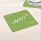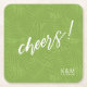 Colourful, paper coaster design featuring a seamless pattern of palm leaves in shades of spring green with bold, white 'Cheers' text. Add your initials and wedding date using the provided template. This tropical design is perfect for summer, beach and tropical weddings, birthdays and other special events. Search ID577 to see matching products.