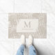 Our unique and modern palm leaf pattern on a personalized monogram doormat in neutral beige taupe and tan shades will look great at any beach house or vacation home doorstep.