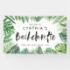 Modern tropical palm leaf watercolor foliage bachelorette party banner. Hand painted effect script text. Part of a on trend summer collection. Background colour can be changed.