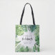 Tropical palm leaf & script bachelorette holiday tote bag