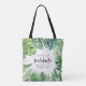Modern tropical palm leaf watercolor foliage bachelorette party or holiday tote. With space for the brides name, the party of holiday destination and the date of the bachelorette. Hand painted effect script text. Part of a on trend summer collection. Background colour can be changed.