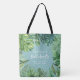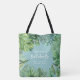 Modern tropical palm leaf watercolor foliage bachelorette party or holiday tote. With space for the brides name, the party of holiday destination and the date of the bachelorette. Hand painted effect script text. Part of a on trend summer collection. Background colour can be changed.