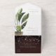 Tropical Palm Leafy String Lights Wedding QR Code All In One Invitation
