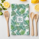 Tropical Palm Leaves Botanical Pattern Monogram Tea Towel