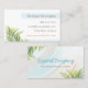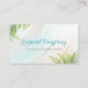 A refreshing and clean tropical business card bordered with palm leaves and a faded water swirl background on one side. Great for travel companies, tropical tours, vacation rentals on the Caribbean islands, and other similar industries.