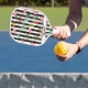 Personalise this paddle with monogrammed initials for a fun and distinctive touch. Perfectly blending girly chic with elegant professionalism, this paddle is ideal for both casual and competitive players. Its cool and cute design makes it stand out on the court. Elevate your game with this fun personalised pickleball paddle and enjoy the captivating blend of tropical elements and stylish black and white stripes!