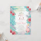 Tropical palm leaves, flowers and pink flamingo. This invitation is easily customised for your event by simply adding your details.