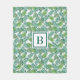 Monogram personalised fleece blanket featuring a botanical green exotic tropical palm tree leaves pttern and personalised monogram in the centre.