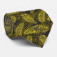 Cool dark grey tie printed with yellow gold tropical palm leaves.