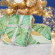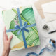 Watercolor jungle banana leaf gift wrap in accents of green and gold.