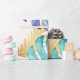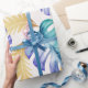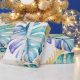 Watercolor jungle leaf wrapping paper in accents of green, blue and gold.