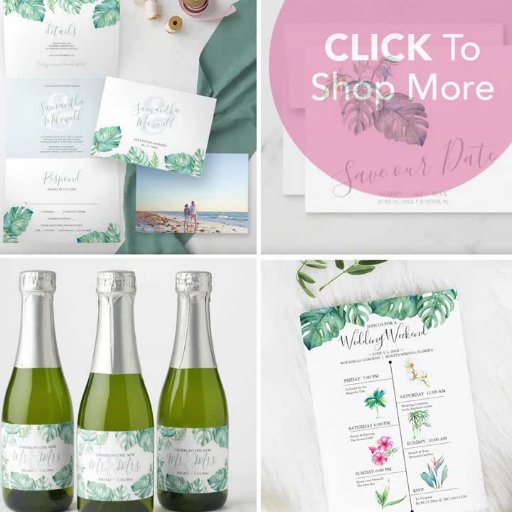 This elegant watercolor wedding program fan features my original hand painted tropical monstera palm leaves in shades of turquoise, blue and green on a crisp white background. The bride and grooms names and island wedding program timeline are set in hand lettered script and sans serif typography. This double sided botanical greenery design is a beach wedding style choice for Caribbean, luau, Hawaiian, Summer, destination and Florida weddings. Designed by Victoria of Do Tell a Belle. To see more, visit www.zazzle.com/dotellabelle