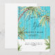 Tropical Palm Trees & Lights Wedding Save the Date. Turquoise Wood.