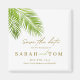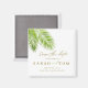 Save your date on a magnet "Embrace modern elegance with this minimalist tropical palm 'Save the Date' design. A clean white background sets the tone for simplicity, while a single, sleek palm frond in soft green gently accents the corner.