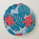 Tropical Palm seamless leaf blue pattern Round Cushion