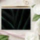 Dark palm leaf outside with blush pink inside. Back flap features white arch with monogram and return address.