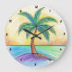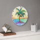 Tropical Palm Tree Beach View Large Clock