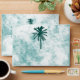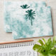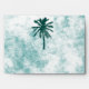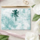 The design features a tropical teal green palm tree on a turquoise and white textured effect background with colour coordinated editable wording.