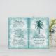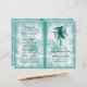 The design features a tropical teal green palm tree on a turquoise and white textured effect background with colour coordinated editable wording.