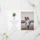 A modern destination wedding save the date featuring a watercolor tropical palm tree on the left half and your favourite engagement photo on the right. Personalise with your details and add your own QR code on the reverse to provide your guests with a link to your wedding website.
