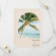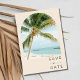 Tropical palm tree save the date for your destination wedding in Key West, Florida or any other beach location. The backside of the save the date features an arch photo and is customised with your wedding details.