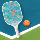 Play in style with this super fun pickleball paddle featuring a colourful tropical palm tree leaf pattern on both sides. Add your name, phone number or custom text to the bottom edge so you'll never lose your paddle again!! Whether you're heading out for rec or competitive play, this unique, one of a kind custom paddle will definitely become your favourite - and you're sure to get compliments. A perfect gift for beginners and experienced players alike - get two and match with your pickleball partner!!