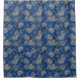 Tropical Palm Tree Leaves Pattern Blue Silver Shower Curtain