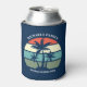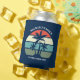 Tropical Palm Tree Navy Blue Sunset Beach House Can Cooler