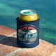 Beautiful tropical palm tree can cooler in navy blue for a chic, modern beach house. Personalise your island home by adding your family name and established date on this cute living room seaside keepsake gift.