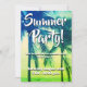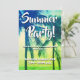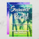 Tropical palm tree neon colour summer party invitations. Custom invites for hot summer beach, BBQ and pool parties. Great for Birthdays, graduations, reunions, retirements, weddings, bachelorette, bridal shower, sweet 16, boating, school, corporate outing, festival, spring break, high school, college, dance music concert, DJ performance, deejay etc. Personalizable announcement text and background photo. Exotic sunset image design with bright neon pink and green colours. Double sided design with beautiful modern brush script typography template. Fun happy vibe design for adults and teen kids.