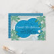 This birthday invitation features a light blue grey background with a pool, an umbrella, beach chairs, and palm trees. The reverse side features a blue background with white wave patterns. Personalise it for your needs. You can find matching products at my store.