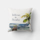 A palm tree sways over the water with its wooden dock edging into the blue lagoon. Whether you live in Florida, California, or a tropical island... you know you're in paradise. And if you've got it, why not flaunt it with outdoor patio pillows telling your visitors, "Welcome to Paradise." PLEASE NOTE: The fabric setting for this throw pillow is currently at "outdoor" but you can easily create a polyester or cotton fabric throw pillow by changing the selection via the drop-down menu. You can also change the saying on the personalisation template.