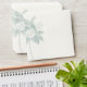 Custom square wedding invitation envelope in cream, with graphics of a pale teal palm tree, on the front, and a light teal colour lining the inside of the envelope. Black text, on the back flap, is fully customisable to suit your needs. Lovely finishing touch to our beach theme palm tree wedding set.