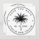 Tropical Palm Tree Wedding Round Photo Save The Date