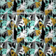 Tropical palm trees modern seamless pattern. White, turquoise gold and black colours.