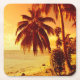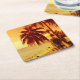 Coaster with palm trees at a beach on a tropical island in the pacific ocean at sunset.