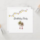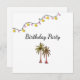 Tropical Beach Birthday party invitation, with an elegant palm trees and string lights design on a white background. With customisable typography lettering, you add your own information. A glamourous invite to plan your special celebration.