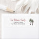 Tropical Christmas return address label, with a palm trees and string lights design. With customisable lettering, you add your own information. Great for your beach themed holiday cards and invitations.