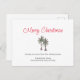 Tropical Christmas greeting postcard, with a palm trees illustration and script typography. With red and black customisable lettering, you add your own information. A cheerful a d festive way send holiday wishes to friends and family from the Beach.