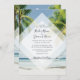 This design features tropical palm trees on a beach. The beautiful greenery of the palms contrast against the blue sky and water. The opaque white diamond element brings the modern typography to the forefront. A perfect fusion of modern and chic. Palm tree greenery design ideal for a tropical beach destination wedding. Beach wedding invitation design with modern elements. Matching wedding stationery items and other wedding invite formats are also available.
