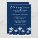 A stylish tropical themed graduation party invitation. Shown in navy blue and white. Perfect for a high school graduation, college graduation or graduation party!