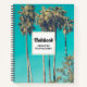Spiral notebook with a beautiful photograph. Tall palm trees with long skinny trunks in front of a lovely green sky. Retro colour scheme. Relaxing and chill.