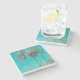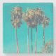 A stone coaster with a beautiful photograph. Tall palm trees with long skinny trunks in front of a lovely green sky. Retro colour scheme. Relaxing and chill.