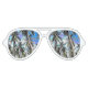 Summer holidays sunglasses with a tropical style design. Tropical palm trees in a graphic effect.