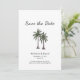 Hand drawn Wedding Save the Date announcement card with a simple palm trees drawing and simple design. With customisable lettering, you can add your names, and wedding information. Great for planning your special day with a tropical destination.
