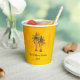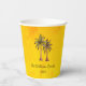 Tropical Bright Gold summer swim party paper cups, with a palm trees illustration design and customisable lettering. A great addition your picnic pool party with a beach theme.