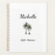 Tropical beach personalised planner, with a colourful palm trees hand drawn illustration. With black typography lettering, you customise with your own name. A modern professional way to stay organised.