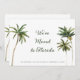 Tropical Palm Trees Moved to Florida New Address Cards... Our tropical themed change of address card features three watercolor palm trees bordering your moving announcement text and new address. Example text on front of the card reads "We've Moved to Florida" in elegant script typography with your name and new address below. The back of the card displays all the details your family and friends need to know about your new location. You can easily revise all example text on front and back of the card using the personalisation template.
