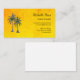 Tropical event planner business card, with a palm trees drawing design on a golden yellow background. With black typography lettering, you customise with your own name or title. A modern professional way to get the word out about your business.
